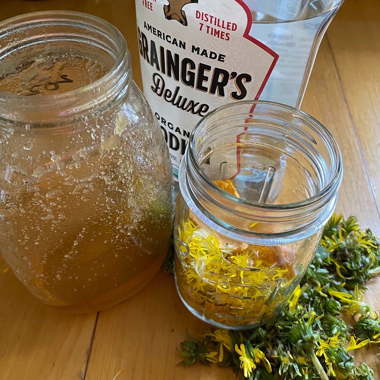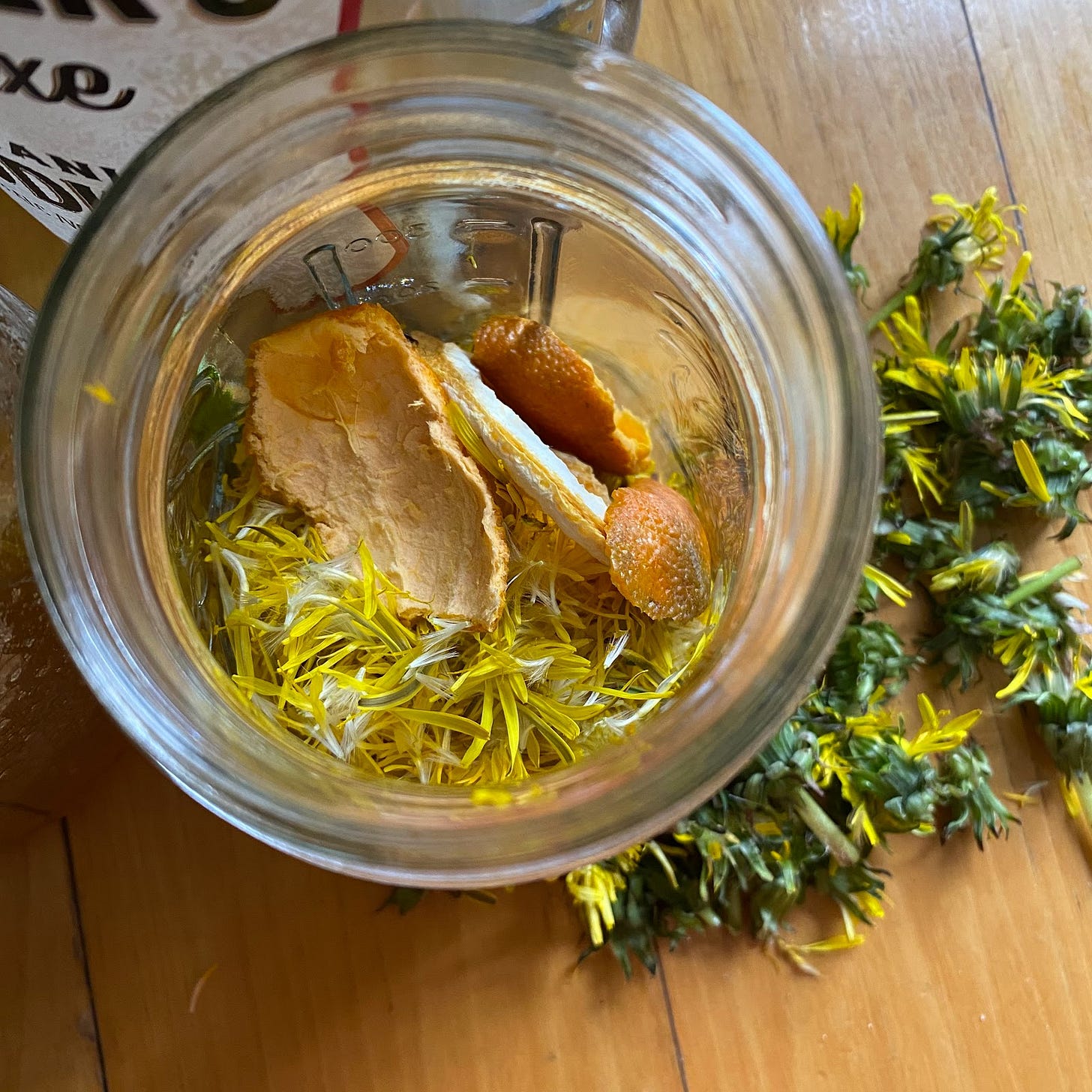 Today I’m making a small batch of a simple Dandelion Liqueur, leveraging a recipe shared a while back by Connecticut Herb Association member, Pam Brundage:
